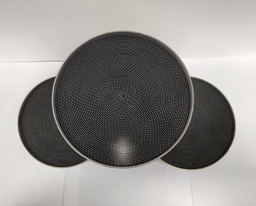 1, convertisseur catalytique à trois voies est la technologie de contrôle externe de courant principal des véhicules d'essence, qui est habituellement installée sur le châssis des véhicules d'essence. Le convertisseur catalytique à trois voies se compose principalement de transporteur, de revêtement de catalyseur et de coquille en métal. Son noyau est cylindre en céramique avec la structure de pore de nid d'abeilles. Puisqu'en céramique n'est pas résistant pour effectuer et choquer, il est scellé avec la coquille de fer sur le revêtement d'extérieur et d'amiante sur la couche intermédiaire pour la soutenir et protéger. Le catalyseur est enduit dans les pores du transporteur en céramique, et l'alumine « revêtement » est employée pour augmenter la superficie et pour améliorer l'efficacité.